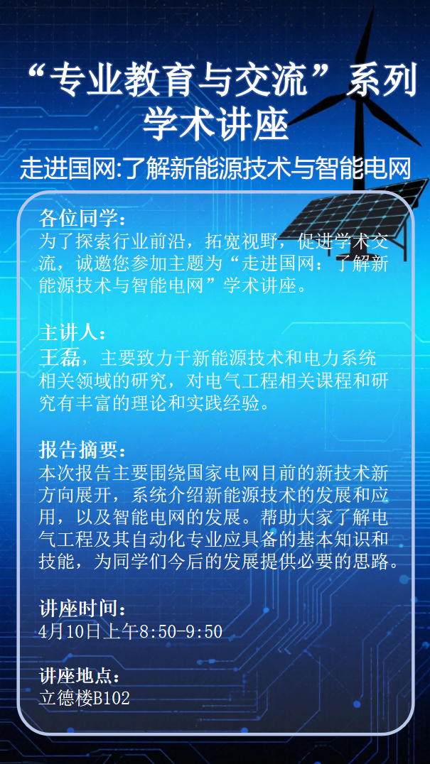 MK体育“专业教育与交流”系列学术讲座第五讲预告:《走进国网:了解新能源技术与智能电网》