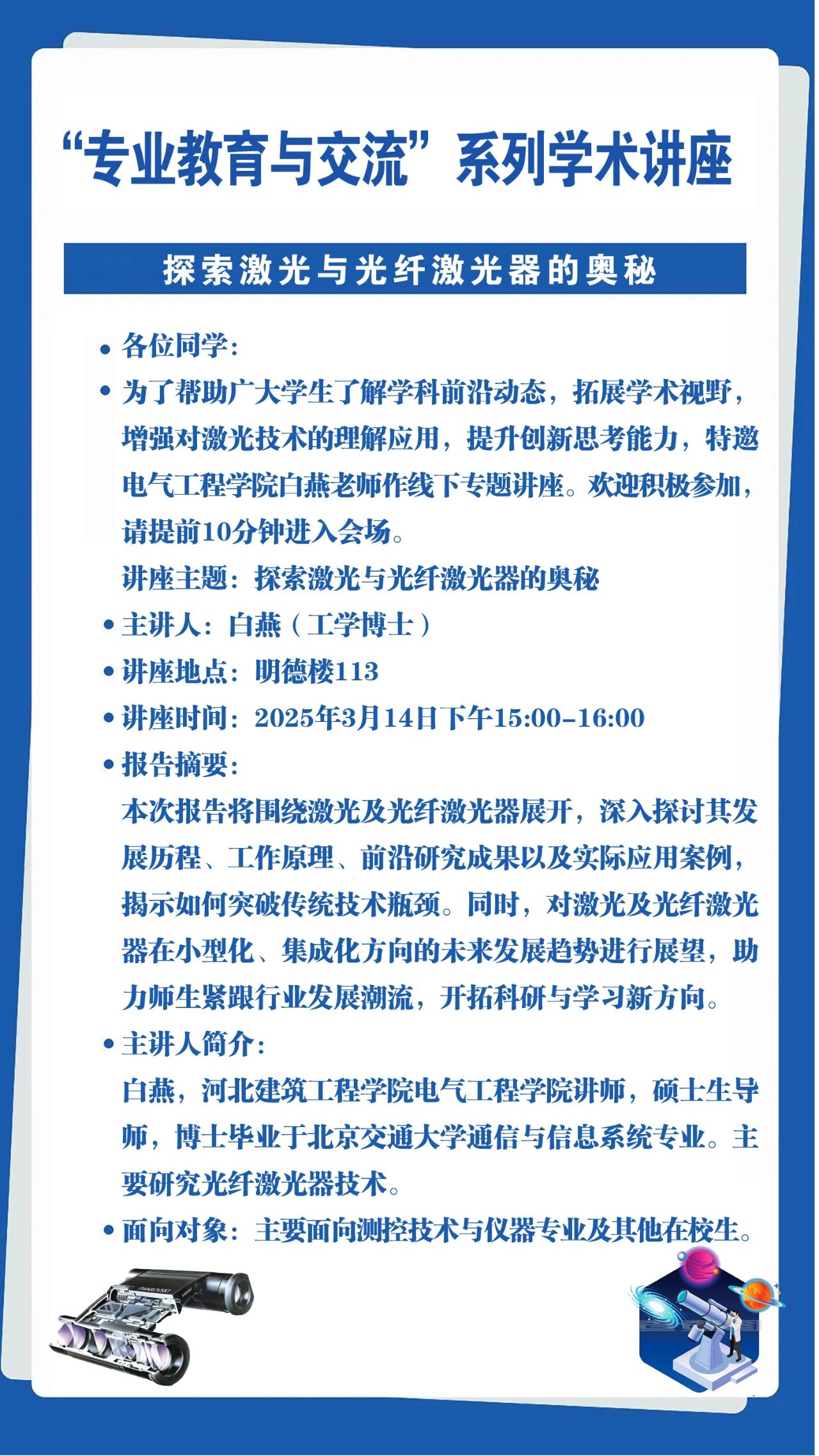 “专业教育与交流”系列学术讲座——探索激光与光纤激光器的奥秘