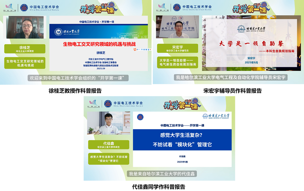 2025年9月20日,由中国电工技术学会主办的“开学第一课”专题讲座在线上直播,MK体育积极组织2025级新生集中观看,共同聆听了一场关于电力技术与电气学科发展的精彩学术盛宴。