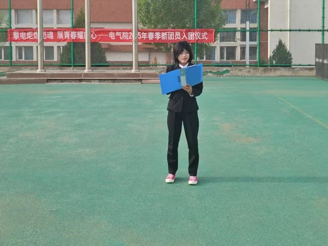 李媛媛同学作为老团员代表上台发言,分享自己在共青团组织中的成长感悟与收获,激励新团员积极进取。从青涩到成熟,老团员们用亲身经历告诉大家,共青团是成长的摇篮,是奋斗的舞台。